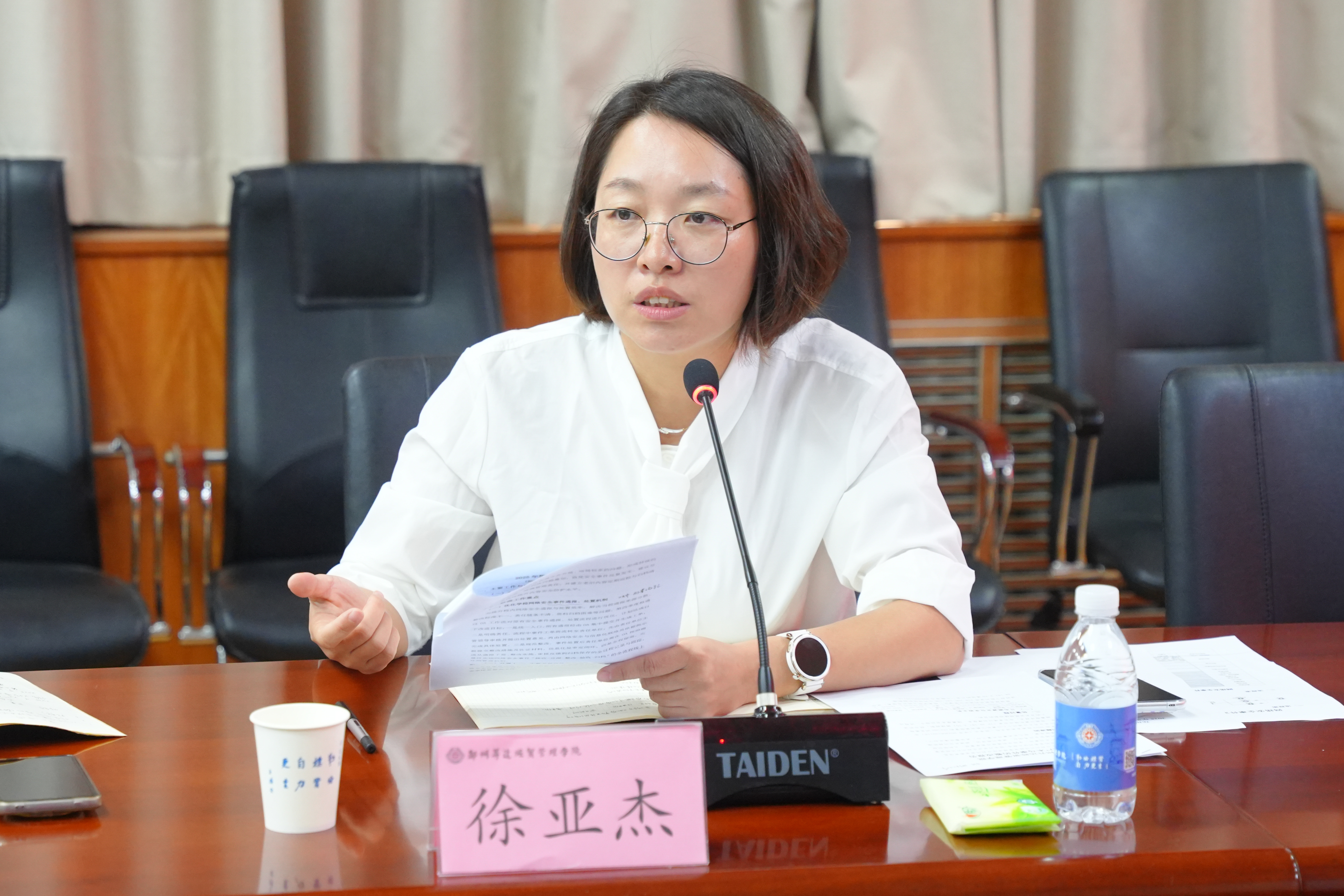 为全面落实网络安全工作的相关要求、进一步压实网络安全责任,总结复盘近期工作,部署下一阶段任务,9月26日,学校在第二会议室召开2025年第三季度网络安全工作会。校党委委员、副校长张其武出席会议并讲话。党委宣传部、融媒体中心、信息化处等部门负责人及各二级学院党委书记参加会议。会议由信息化处处长程敏姿主持。